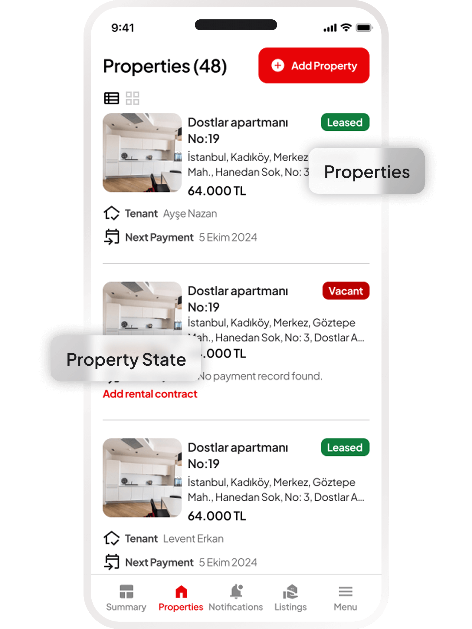 We handle property management, rent tracking, contract management, maintenance, and financial processes with our intelligent systems—so you can simply track your earnings while we take care of the rest!
